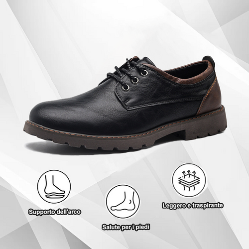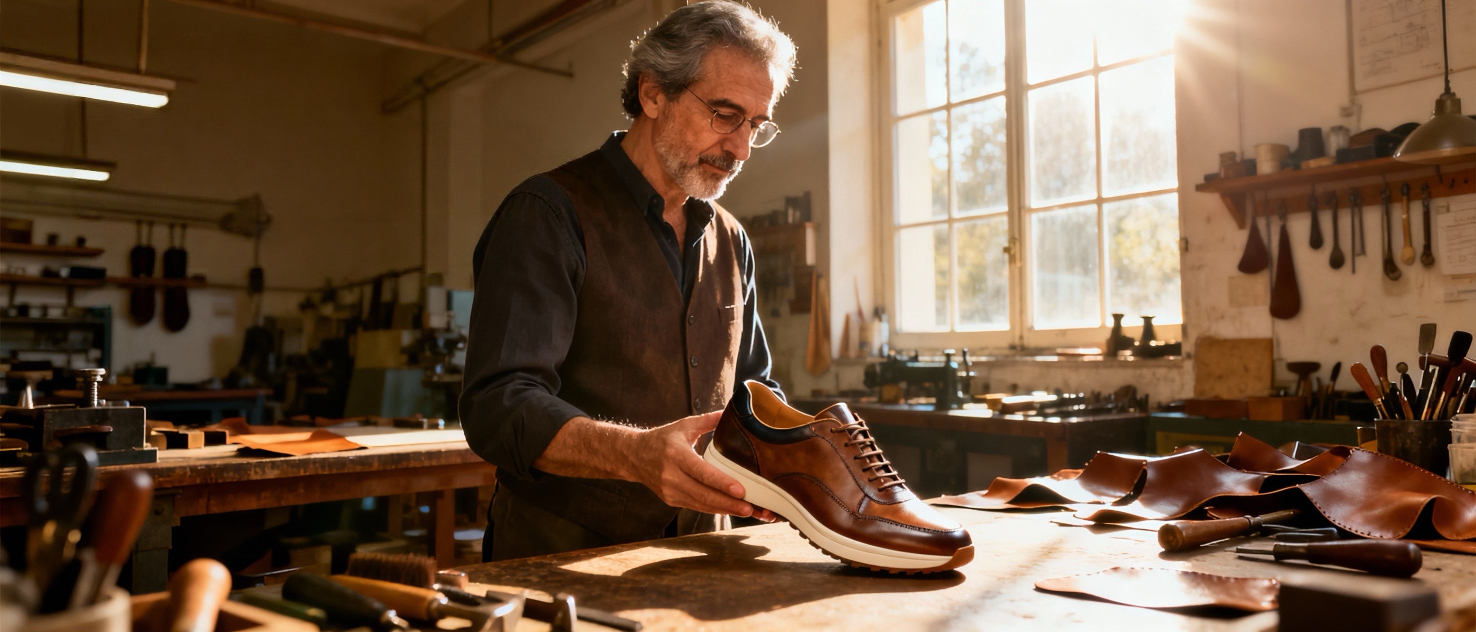 Ogni paio di scarpe è sottoposto a 38 lavorazioni, utilizzando pelle toscana pieno fiore accuratamente selezionata, che unisce qualità e durevolezza.