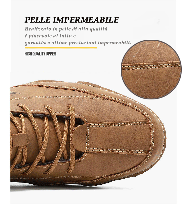La pelle pieno fiore offre una sensazione di comfort, un'eccellente vestibilità e un'elevata resistenza alla trazione.Ogni prodotto è tagliato e cucito con cura da artigiani esperti, che prestano attenzione a ogni dettaglio e applicano le loro superbe capacità a ogni punto per ottenere una qualità eccellente.